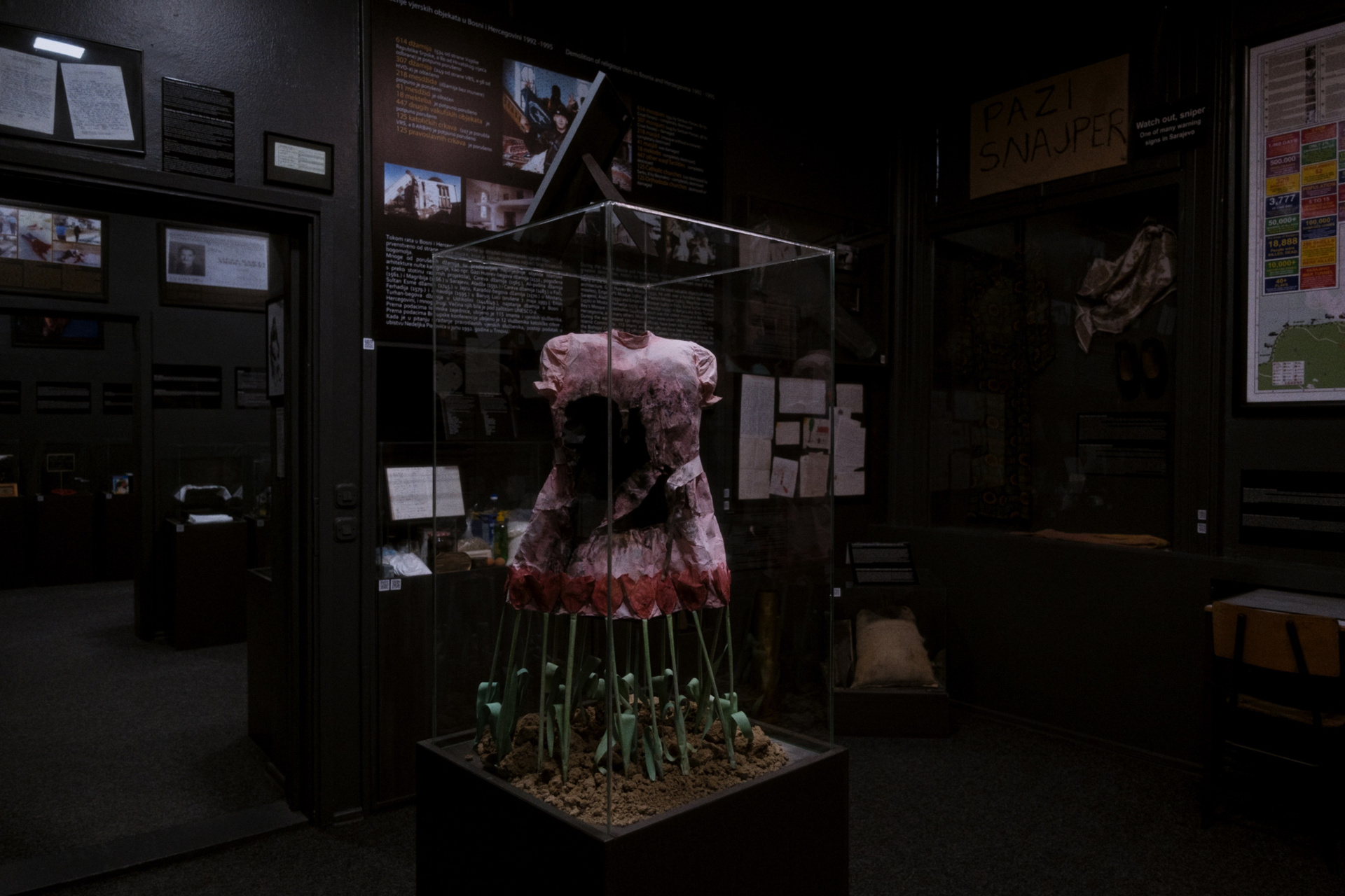 The museum’s exhibits include photographs, video footage, simulations, artifacts, maps, and personal testimonies from survivors. The permanent exhibition is divided into 12 sections, arranged thematically and chronologically to provide a comprehensive overview of Bosnia’s history of genocide. Visitors will encounter items recovered from mass graves, messages sent by the Red Cross during the war, and displays about the shelling of civilians, the use of landmines, and the concentration camps.