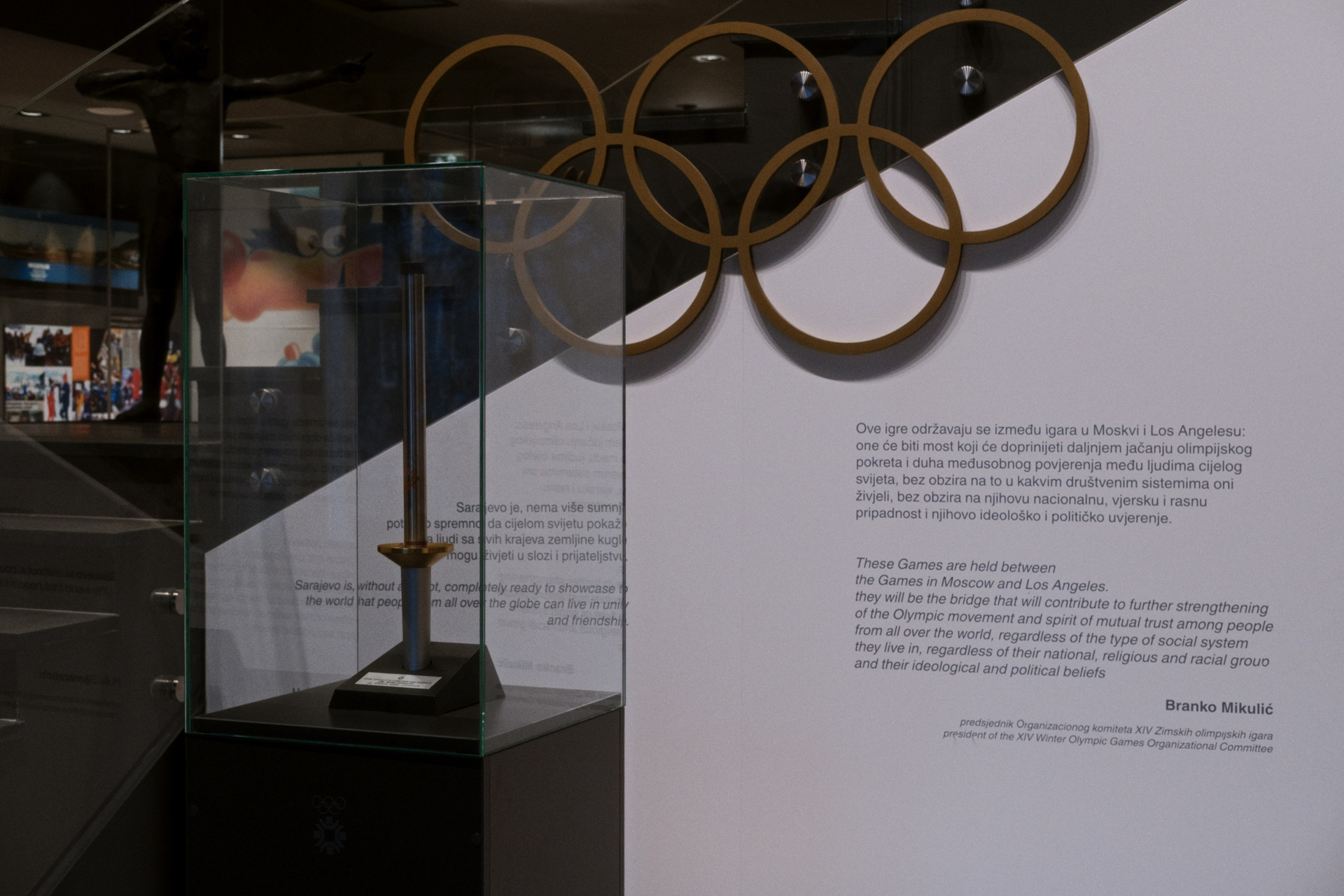 After the end of the war, the exhibits were temporarily displayed in the Zetra Olympic Hall, where they were kept until the reopening of the Olympic Museum in Sarajevo. In the presence of Prince Albert II of Monaco, and representatives of the International Olympic Committee, the museum was officially opened on 8 October 2020. The exhibits on display include the XIV Winter Olympic Games '84 and the European Youth Olympic Festival (EYOF) 2019, representing an important part of Sarajevo’s sporting and cultural heritage.